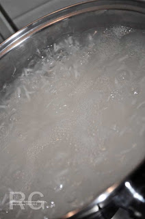 12. Bring a saucepan of water to the boil. I always use the largest saucepan that I have to give the rice plenty of space to float about and therefore not stick together.